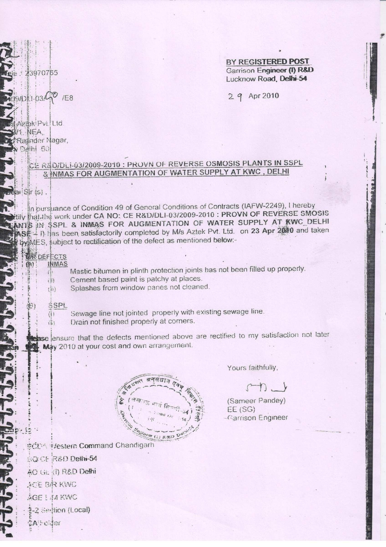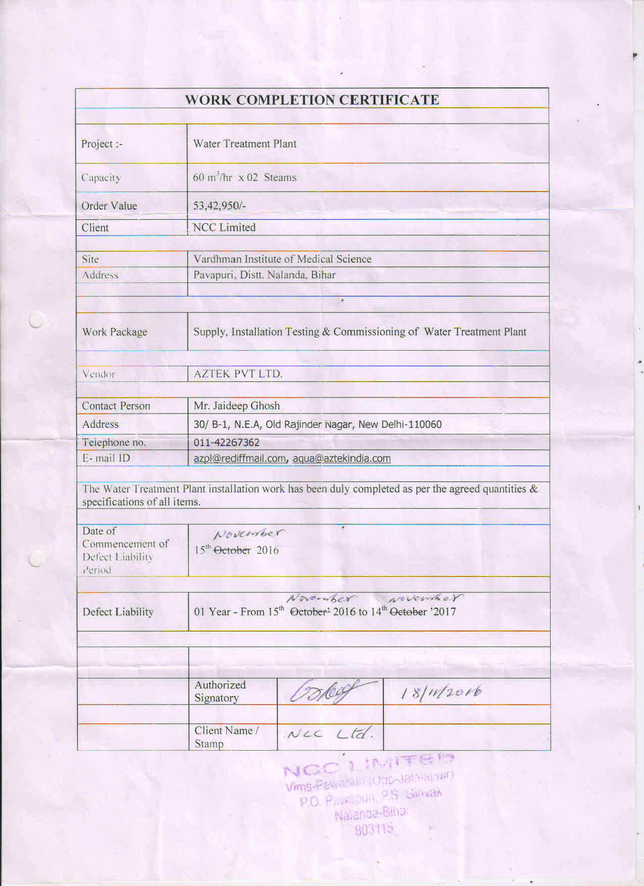 AZTEK has, in the past 17+ years, successfully executed multiple water and wastewater treatment contracts for International & Indian clientele in the Food & Hospitality Industry, Defence and Oil & Gas Industry comprising Pepsi, Taj Group, ITC Hotels, ESIC Hospital, BPCL, Fortis Hospital, DRDO, M.E.S., and many more….